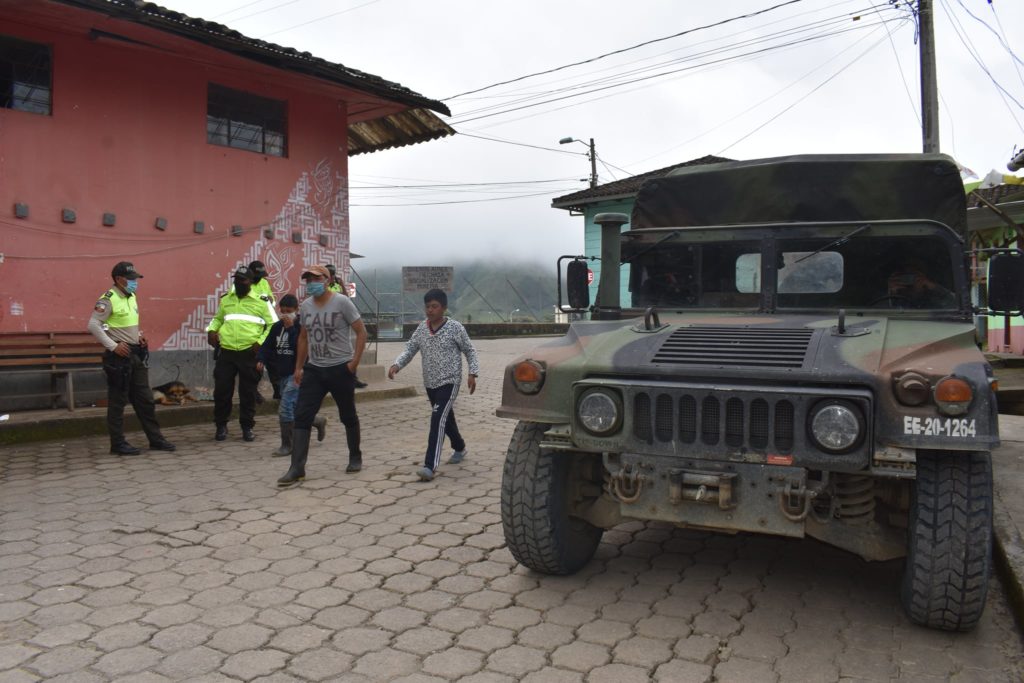 El 19 de abril del 2021, la empresa Hanrine Ecuadorian Exploration And Mining S.A. llegó hasta la entrada de la comunidad con 6 camiones y unas 25 camionetas llenos de trabajadores y maquinaria. Pero no llegaron solos. Con ellos llegaron elementos de la Policía Nacional y del Ejército, con la intención de pasar hacia los campamentos donde la empresa planea iniciar sus actividades de explotación minera cuatro años después de que, durante el gobierno de Lenín Moreno, les fuera otorgada la concesión. Hasta el día de la publicación de este reportaje, la presencia de la empresa continúa.
