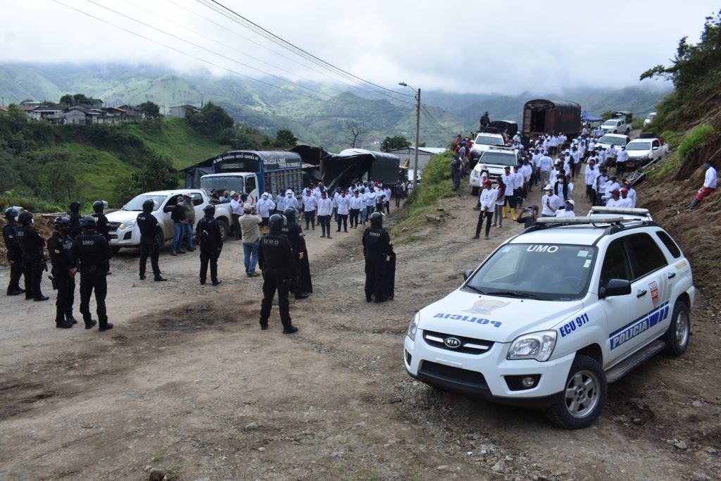 Desde el primer día en que la empresa Hanrine arribó a la comunidad, se han acercado representantes de cinco instituciones y ministerios para intentar abrir diálogos con la comunidad. Funcionarios de la Aldaldía de Urcucquí, la gobernadora de Imbabura, María Gabriela Jaramillo, y operarios del Ministerio de Energía y Recursos Naturales No Renovables, e incluso miembros de la Dinapen han fracasado en su intento de persuadir a la población para que permita el paso de la minera australiana
