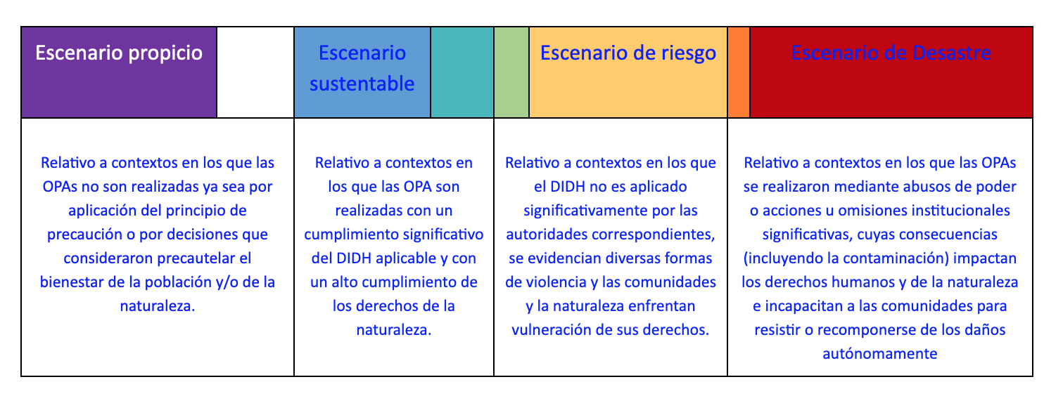 La adopción de este modelo es recomendable, además, porque se sintoniza con el lenguaje del derecho internacional de los derechos humanos, permitiendo la interlocución con agentes intergubernamentales susceptibles de incidir en las políticas públicas en la materia y en el plano nacional, generar desde abajo una pedagogía para los actores implicados, orientada en la conformación de una vigilancia conjunta de la convencionalidad de los actos y conductas del campo de la explotación de la naturaleza y su impacto en los derechos de ésta y de las comunidades.