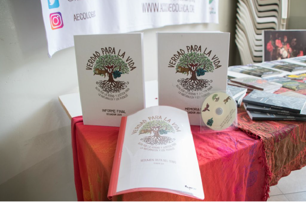 La Ruta se marcó como objetivo generar una revisión de las políticas del Estado ecuatoriano en materia de derechos de la naturaleza, vinculando los derechos colectivos e individuales, con el fn de generar: “Verdad, Justicia y Reparación” en los casos de violaciones de derechos; para impedir que caigan en el olvido, la impunidad y con el objetivo de que los daños producidos sean reparados hacia las comunidades y restaurados hacia la naturaleza. La Ruta se configuró inspirada en las Comisiones de la Verdad que promovieron la Verdad, Justicia y Reparación; en los años 90 del Siglo XX, tras las dictaduras y guerras internas que asolaron América Latina. Las comisiones de la verdad se han institucionalizado tras la lucha de la sociedad civil por sus derechos, después de los conflictos armados y periodos dictatoriales en Argentina, Chile, El Salvador, Guatemala, Uruguay, Perú, Paraguay, Colombia, Ecuador, Honduras y Brasil.