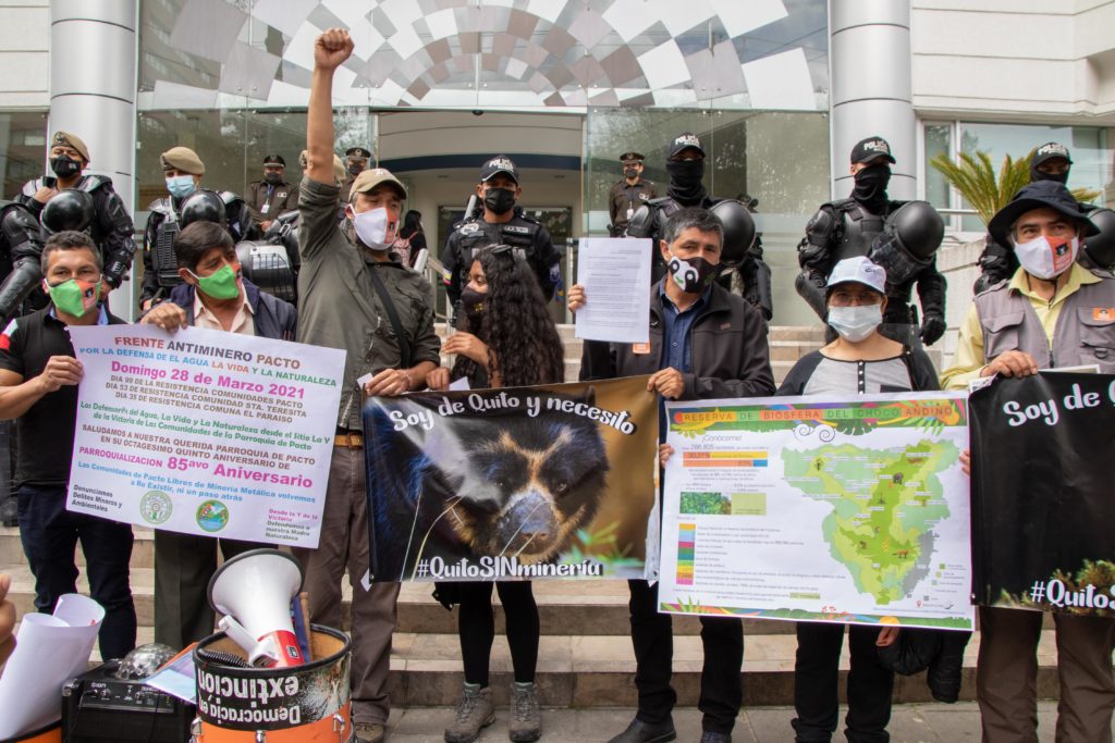 Este mismo día, la Mancomunidad del Chocó Andino cumplió 100 días de resistencia contra la minería. Conformada por habitantes de las parroquias de Pacto, Calacalí, Nono, Nanegal, Nanegalito y Gualea, parte del Cantón Quito-DMQ, los cuales se declararon en resistencia contra la minería y en defensa de los ríos y bosques del Chocó Andino. En el sitio la Y de La Victoria, en la parroquia de Pacto, instalaron una carpa de vigilancia que se constituyó en su centro de lucha y organización comunitarias en contra de la minería metálica, generadora de impactos ambientales y conflictos sociales.
